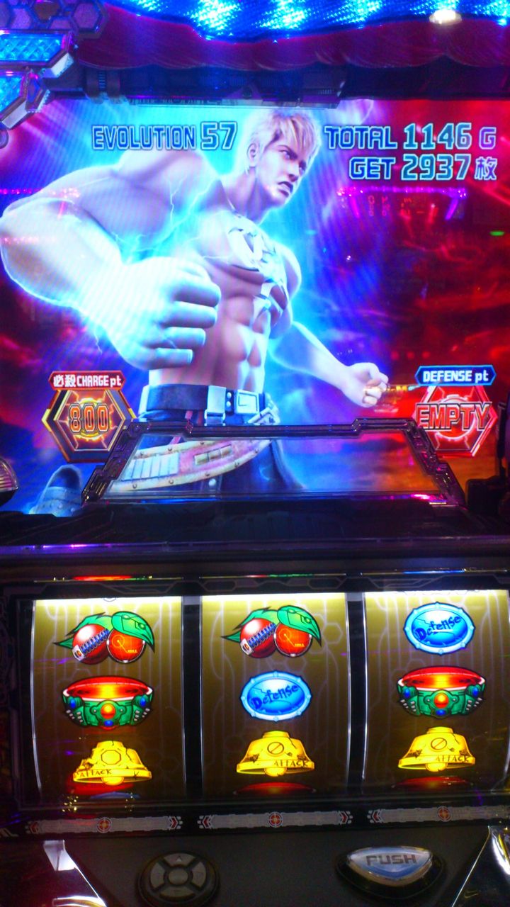 青7は一回だけ引いて100Gスタート。一回融合ボナに入った時は、何も引かずに瞬く間に赤にチャンスアップしてったけど、融合ボナから戻った時は、全く色の変化なしで、恐らく鉄拳3みたいに一回目だけ優遇されてる