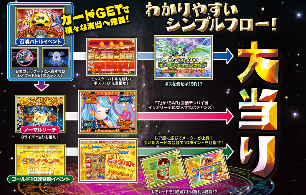 とりあえず「レアカード」が大当たりには必須っぽいですね。