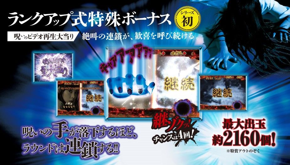 新しく追加されたものとしてRU式特殊ボーナス「呪いのビデオ再生大当たり」がありますね。