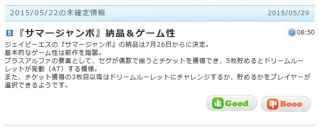 JPS「パチスロサマージャンボ」のゲーム性・導入日に関する噂情報です。