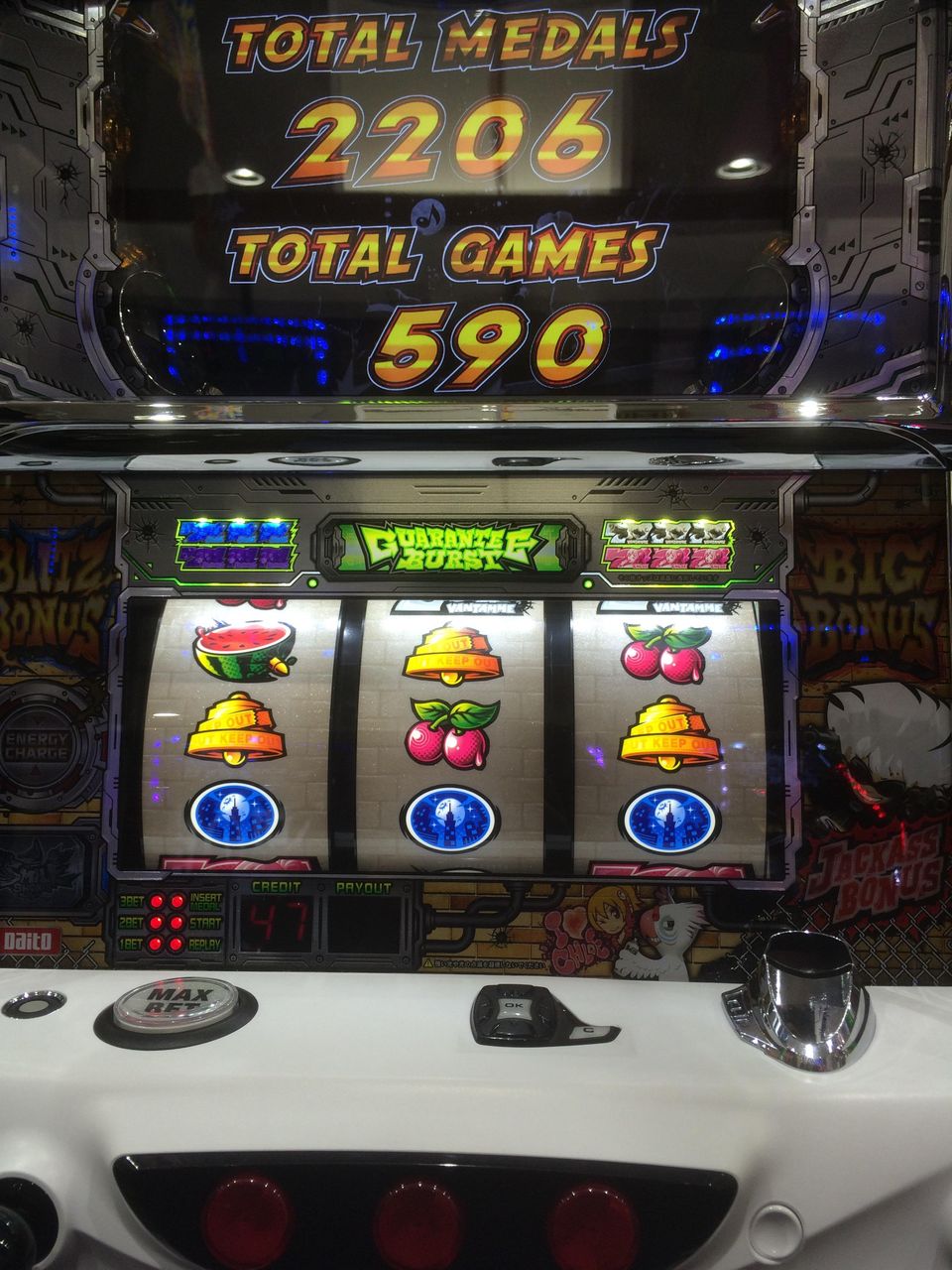 後、ジャッカス終了後の転落前に強MBチェリー引いたらWIN出てジャッカスだった
