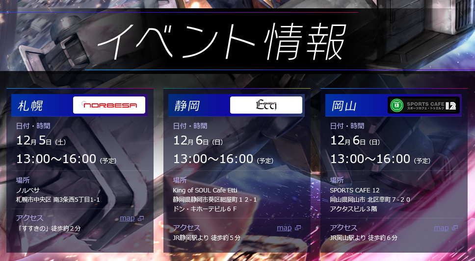 ビスティ「パチスロ機動戦士G 覚醒CB」のスペック情報とイベント情報です。