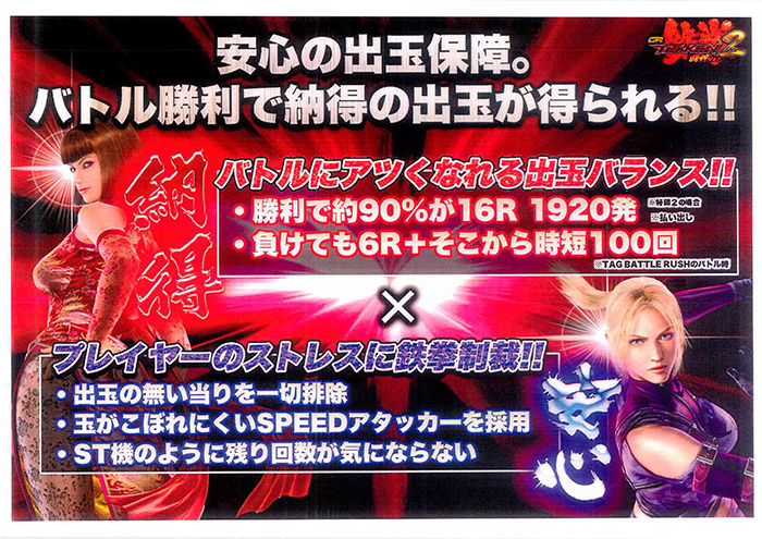 新台「CR鉄拳2 闘神ver.」営業資料が公開!!ギガ鉄拳ギミックやチュルリラゾーン、タッグバトル中フローも!! 2016年06月07日 カテゴリ:ニュース スポンサーリンク ビスティ「CR鉄拳2」の営業資料が公開されました。やはり拳アンド拳アンド拳!http://surokan-matome.blog.jp/archives/7084043.html通常時と確変中のフローや各モードの名称などが説明されてます。あのドデカ拳役物はやはり激アツギミックのようで、通常時なら高信頼度、確変中なら16ラウンド確定になるみたいですよー スポンサーリンク タグ :#パチンコスペック#CR鉄拳2 「ニュース」カテゴリの最新記事 スポンサーリンク コメント コメント一覧 (1) 1. 名無しのドキュメンタリスト 2016年06月07日 12:32 STじゃないだけいいな コメントする コメントフォーム 名前 コメント 評価する リセット リセット 顔 星 投稿する 情報を記憶