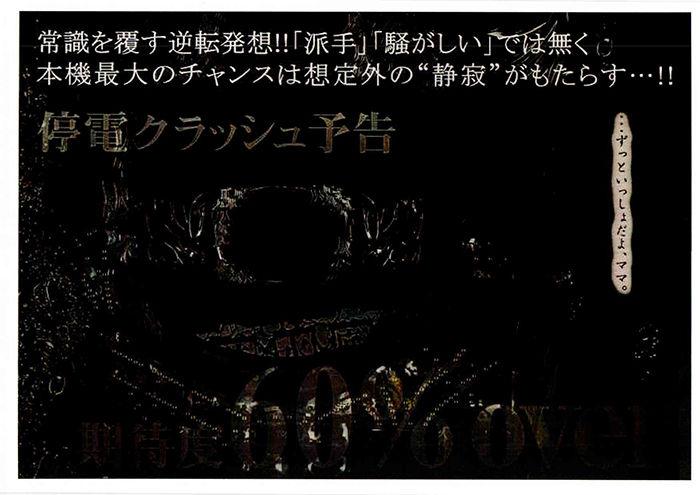 静かな停電クラッシュ予告と設定ボリュームに関わらず常に爆音で発生する美津子役物の落差が良い・・・ってことでしょうか。美津子変動に美津子接近モードと美津子関係が多いですが、そろそろ「貞子」「伽椰子」「美津子」と役者が揃ってきましたね!??