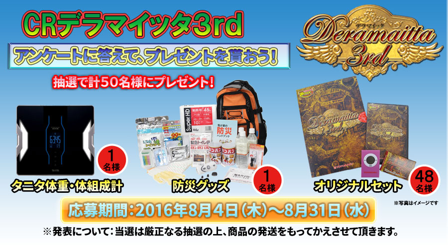 豊丸「CRデラマイッタ3rd」のプレゼントキャンペーンが開催されています。