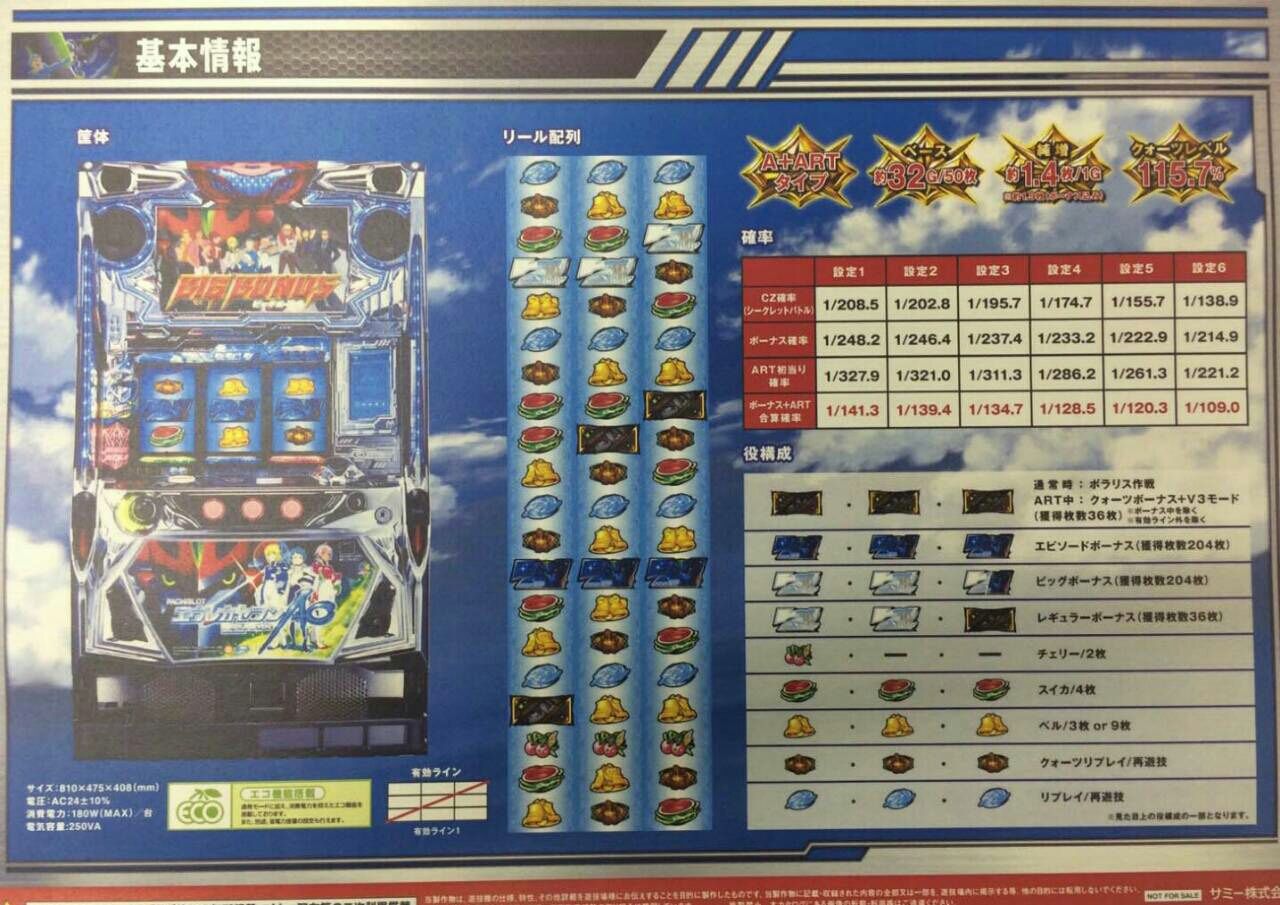 【資料】SLOT「エウレカセブンAO」解説画像!!ポラリス作戦やV3モードに小役構成、クォーツレベル「115.7%」!? 2016年10月21日 カテゴリ:ニュース スポンサーリンク サミー「パチスロエウレカセブンAO」の資料画像が公開されました。初代+2・・・みたいな雰囲気!?http://surokan-matome.blog.jp/archives/12144790.htmlエウレカセブンAOの資料画像が出てきましたねー。スペックの他、ベルやクォーツリプレイを引き続ける限り継続するクォーツアクティベートチャンスや最強の上乗せ特化であるV3モード等の情報、ゲームフロー等も掲載されています。気になるのが1枚目にある「クォーツレベル115.7%」の表記。機械割の情報が全く出ていないのも合わせてなにやらきな臭い感じがするのですが、果たして・・・? 関連:エウレカセブンAO/ZZ 検定通過 関連:エウレカセブンAO/XS 検定通過 スポンサーリンク タグ :#スロットエウレカセブンAO#パチスロスペック#スロットスペック 「ニュース」カテゴリの最新記事 スポンサーリンク コメント コメント一覧 (1) 1. 名無しのドキュメンタリスト 2016年10月21日 13:37 6の機械割115.7%ってことかな?だとしたら新基準では最高のハイスペック機、ボーナスもまぁまぁ軽い、ARTも1.4枚で事故要素あり、詐欺ってなかったらメイン機種になりそう。詐欺ってなかったらね。 コメントする コメントフォーム 名前 コメント 評価する リセット リセット 顔 星 投稿する 情報を記憶