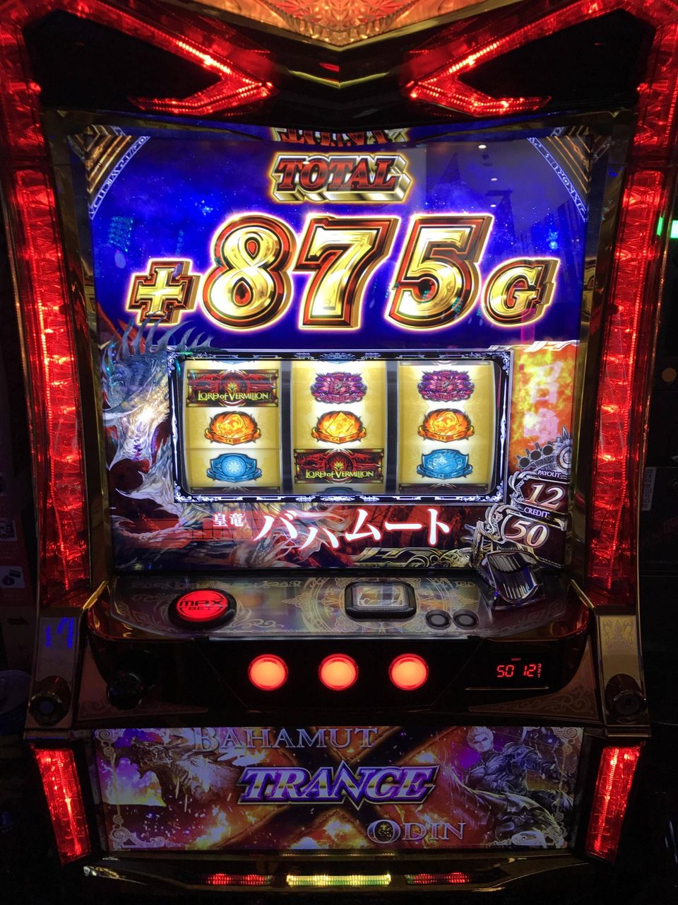 よくわからんけど、150位であたって1000枚位で出て軽い初当たりで3時間ほどで少しずつ増えていって、そこから氷の女の人のとこで中段ベルひいてバハムート登場590乗せて、なんやかんやで2100G継続してトータル5500枚ほどお持ち帰り。