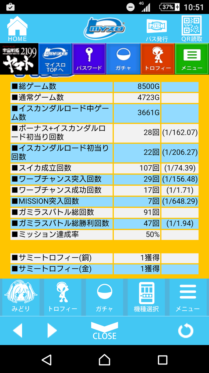 出玉性能は新基準は似たり寄ったりだけど、ヤマトは昨今の台とは少し違って特化ゾーン偏重な感じはしなかった、レア役大事なとこで引ければどうにかなる、そこは最後までそんな感じ