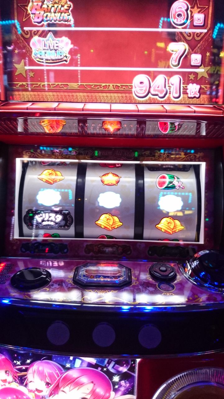この台ボーナスの初当たりがライブだともう本当にどうにもならない、20ゲーム間に強レア役引いて、奇跡的にボーナスの上乗せしない限りほぼ駆け抜ける、ライブボーナス20回位引いて継続したの3回だけ。