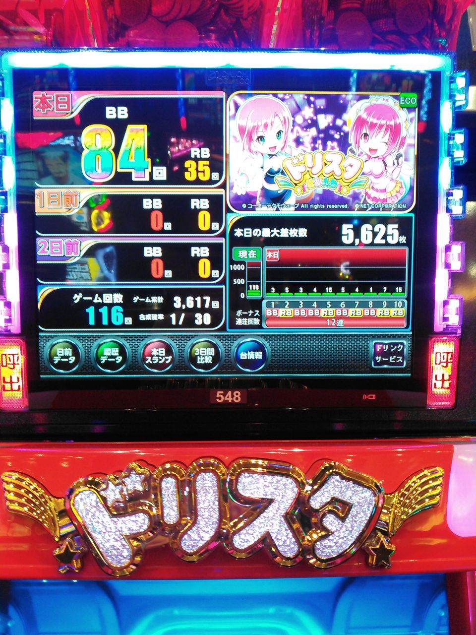 呑まれたので止めようとしたが、左下のランプが4/5点灯していたので続行したら546嵌った