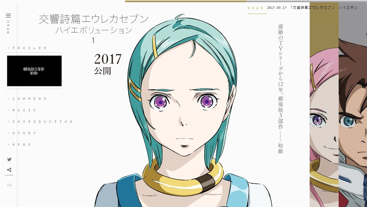 そして2017年。『交響詩篇エウレカセブン ハイエボリューション』がスタートします。新たに3部作として開幕するレントンとエウレカの物語に今、注目です。
