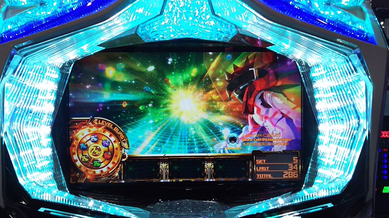 継続MAX22連で1700枚。7を狙えの3連白7は気持ちいい。あとフィクションジャンクションの曲が良かったです。