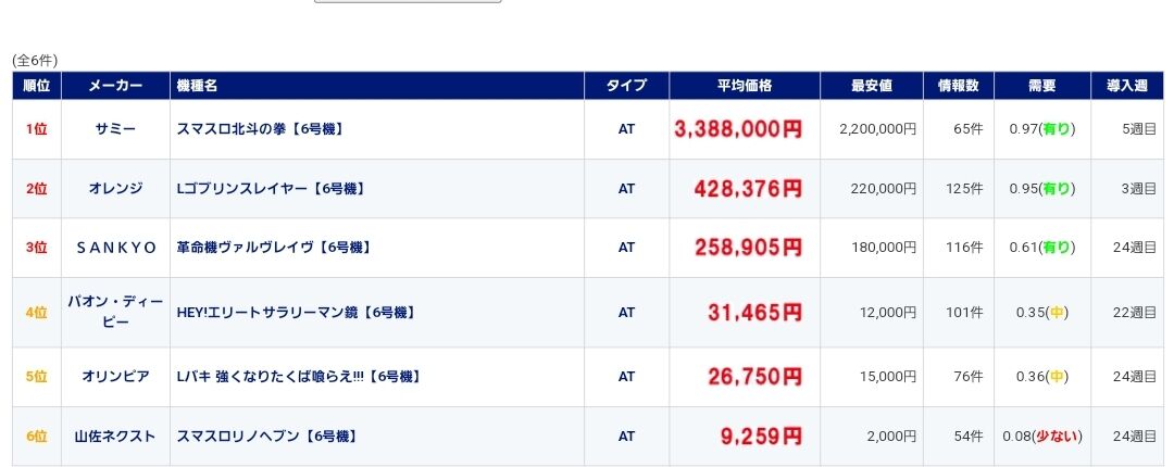 上3機種以外は捨て値なんですが、いい