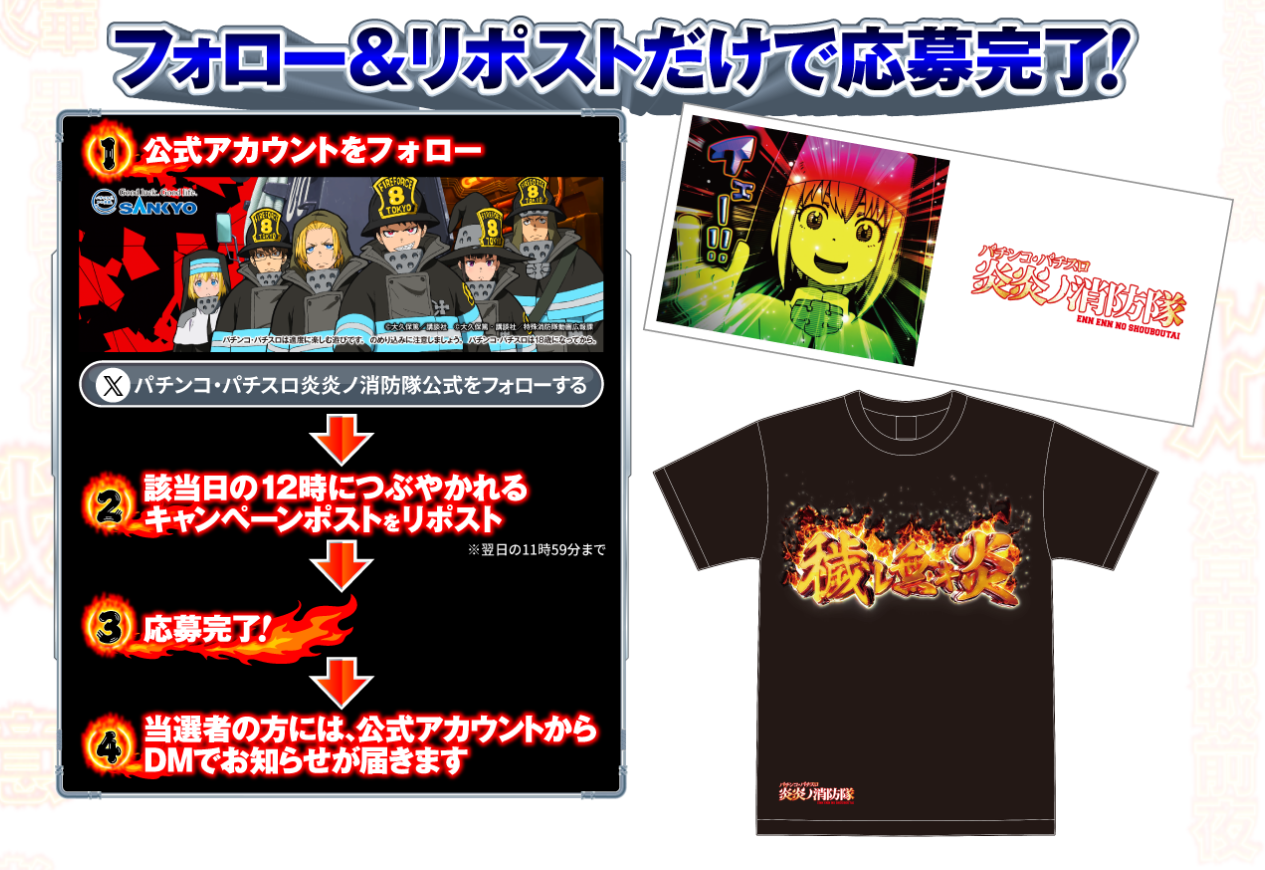 🚒詳細は特設サイトにて🚒 https://t.co/hurM5MjydX#SANKYO #炎炎ノ消防隊 #fireforce pic.twitter.com/o8YZSD7vyv