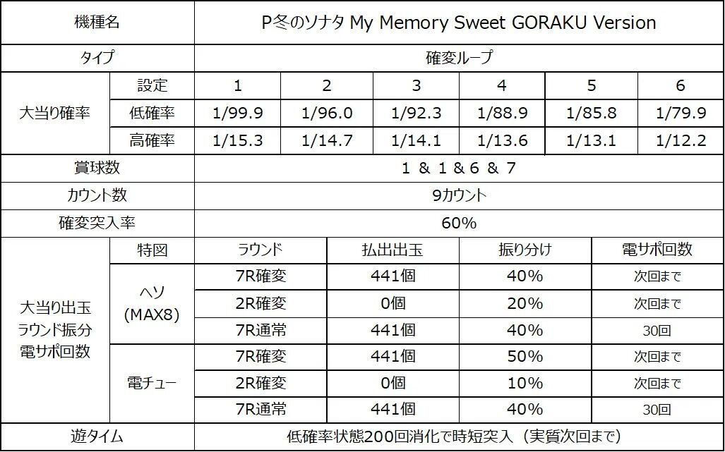 (1)販売名:P冬のソナタ My Memory Sweet GORAKU Version