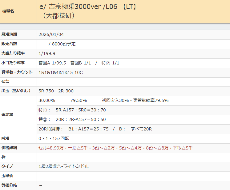 【新台】大都「e吉宗 極乗3000Ver.」スペック詳細!大当たり確率1/199、RUSH中は3000個の1G連搭載! 2025年10月07日 カテゴリ:ニュース スポンサーリンク https://www.redesign777.tokyo/Spec/PachinkoView?id=P2025100512552001&flag=True 3000個大当たりの一部で1G連みたいな感じですかね。 スポンサーリンク 「ニュース」カテゴリの最新記事 スポンサーリンク コメント コメント一覧 (2) 2. 名無しのドキュメンタリスト 2025年10月08日 21:45 昔のめちゃ荒波だったパチ吉宗好きだったわ 1. 名無しのドキュメンタリスト 2025年10月07日 21:32 何とも言い難いスペックやな コメントする コメントフォーム 名前 コメント 評価する リセット リセット 顔 星 投稿する 情報を記憶