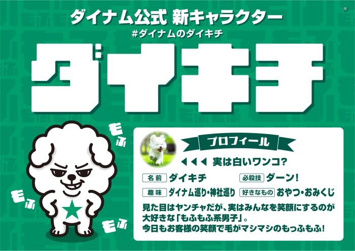 パチンコホール大手の株式会社ダイナムにて、新たな公式キャラクター「ダイキチ」が動き出していることが分かった。現時点で、一部店舗のSNS(X)や店舗ホームページにおいて案内が始まっており、2026年度からの本格的な展開が予想される。